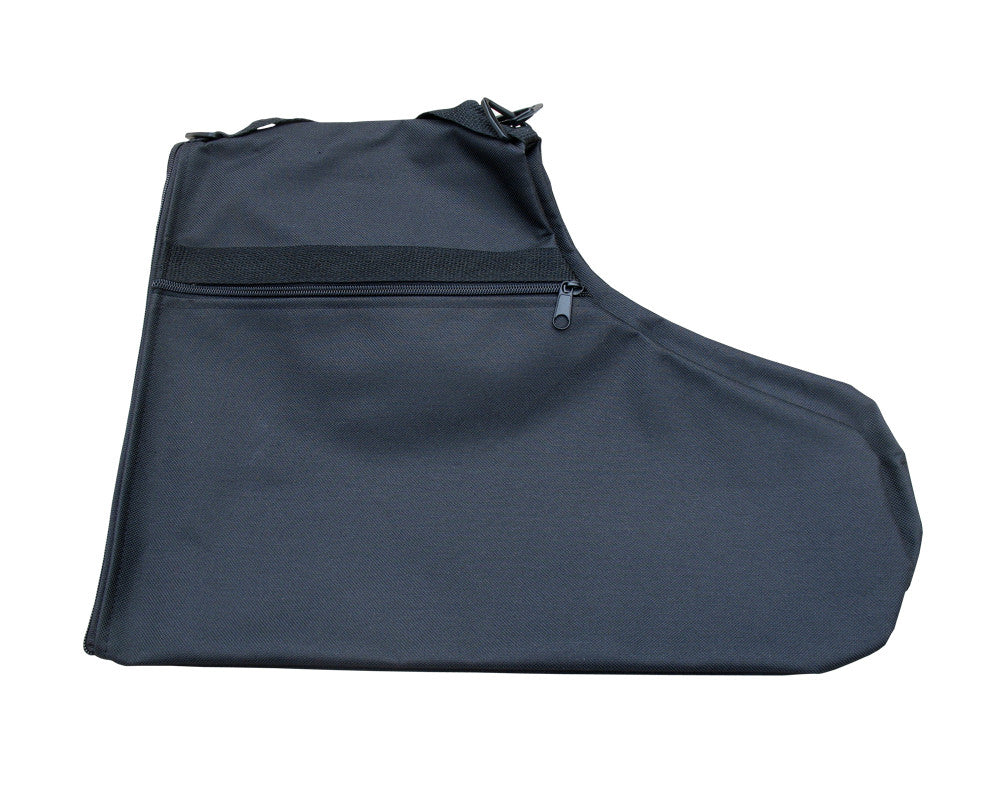 Saddle-style bag with two large pouches for skates, a side-zipper pocket for accessories, and two straps: a short one for carrying and a long adjustable shoulder strap